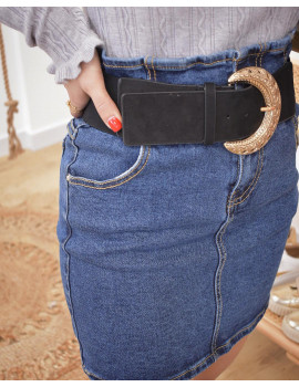 Jupe courte effet daim. Détails festonnés. Boutons sur le milieu devant. Taille : S - M - L Murielle porte généralement du S (36). Elle mesure 1,65 m et porte la taille S. Entretien & Lavage : Suivre les indications sur l'étiquette produit. S = 36 / M = 38 / L = 40