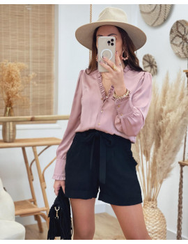 Short satiné vieux rose Pinces sur la taille Taille haute Ceinture satinée Poches Fabriqué en France Entretien :