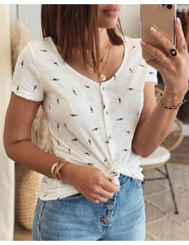 T-shirt réversible. Motifs nageuses brodées. Boutons dorés. Col rond. Taille : S - M - L Murielle porte généralement du S/36. Elle mesure 1,65 m et porte la taille S. Fabriqué en Chine. Entretien & Lavage : Suivre les indications sur l'étiquette produit.