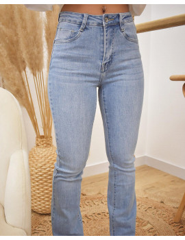 Jean taille haute Fermeture boutons apparents Stretch Fendu sur le bas Camille porte habituellement du 34 et mesure 1m58. Elle porte la taille XS Fabriqué en Chine Entretien :