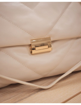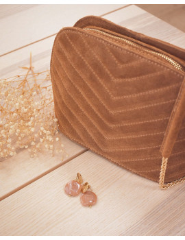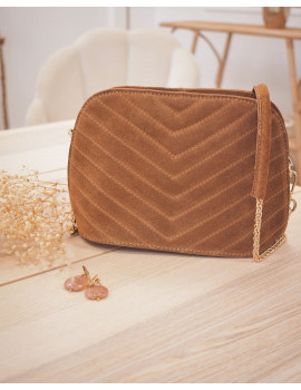 Sac demi-lune matelassé camel Bandoulière en chaine Fabriqué en Italie