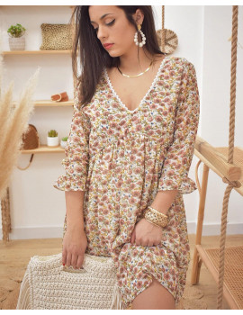Robe chemise fluide Boutonnée jusqu'à la taille Manches 3/4 Col en V Bas doublé Coupe ample Camille fait habituellement du 34 et mesure 1m60. Elle porte une taille S/M Fabriquée en Chine. Entretien :