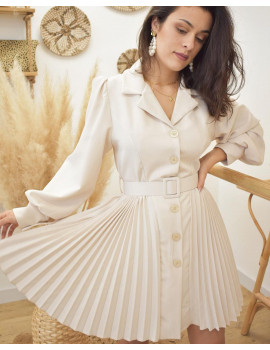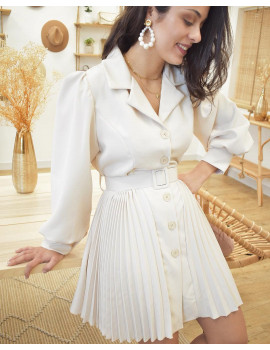 Robe boutonnée. Matière fluide. Jupe de robe plissée sur le devant. Manches longues bouffantes. Bouts de manches boutonnés. Taille cintrée. Ceinture de robe fournie et réglable*. Non doublée. Taille Unique - convient pour les tailles XS - S - M - L (34 au 40). Camille mesure 1,60 m et porte généralement du XS (34). Fabriquée en Italie. Entretien & Lavage : Suivre les indications sur...