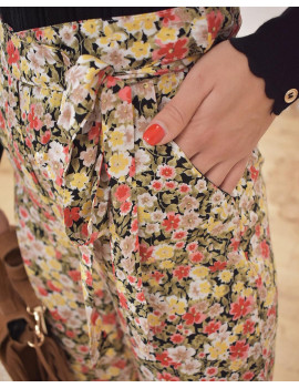 Pantalon fluide fleuri Coupe palazzo (coupe ample) Lien à nouer à la taille Taille haute Poches Non doublé Camille porte généralement du 34. Elle mesure 1,60 m et porte la taille S Fabriqué en Chine Entretien :