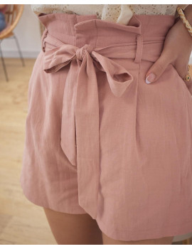 Short paperpag effet lin rose Pinces à la taille Braguette et boutons pour fermer le short Élastique à la taille Poches Ceinture à nouer à la taille Camille fait habituellement du 34 et mesure 1m60. Elle porte une taille S Fabriquée en Chine. Entretien :