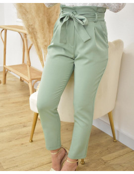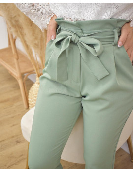 Pantalon droit paperbag Pinces sur la taille Poches Ceinture à nouer Tissus fluide Taille élastique Camille fait habituellement du 34 et mesure 1m60. Elle porte une taille S. Fabriqué en France. Entretien :
