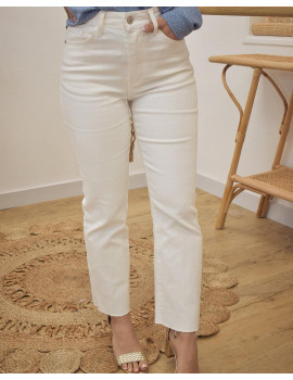 Jean cropped blanc Poches à l'avant et à l'arrière Bords francs Coupe flare Camille fait habituellement du 34 et mesure 1m60. Elle porte une taille XS Fabriquée en Chine. Entretien :