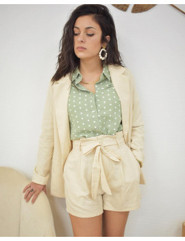 Short paperpag effet lin beige Pinces à la taille Braguette et boutons pour fermer le short Élastique à la taille Poches Ceinture à nouer à la taille Camille fait habituellement du 34 et mesure 1m60. Elle porte une taille S/M Fabriquée en Chine. Entretien :